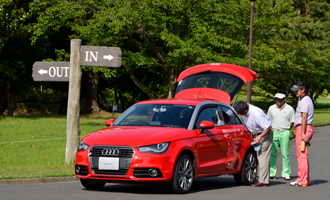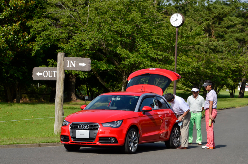 プレイ前に開会式にて、開会のあいさつ、ルールの説明が行われ、最後に恒例の全員での集合写真。アウディジャパン販売の提供によりホールインワン賞の副賞に懸っている赤いアウディA1を囲んでの撮影となった。今回はシーズンの第2戦ということで、年間総合優勝争いを有利に進めるためには、ぜひ弾みをつけたい一戦。紳士と淑女たちは次々に気持ちのいいティーショットを決め、コースへと出発していった。