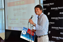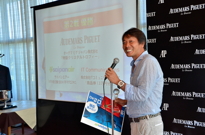 そして栄えある第1戦の優勝者。最後に名前を呼ばれたのはなんと、乾杯にも登場した昨年の覇者、井上盛夫さん! これで5ポイント獲得し、トータル13でまたもや年間ポイントランキング1位に躍り出た。