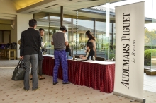 オーデマ ピゲ(以下AP)とファウストA.G.の共催による年間シリーズ戦ゴルフコンペ「オーデマ ピゲ ジャパンカップ 2012パワードバイ ファウストA.G.」。開催2年めとなる2ndシーズンも全4戦のうち、3戦目を迎えた。10月22日(月)、第3戦は東急セブンハンドレッドクラブ(千葉市)の西コースを舞台に開催。貸し切りとなったゴルフ場には、朝早くから、APの顧客とファウスト会員ら100名ほどが集まった。美しく晴れ渡った秋の空、ゴルフには最高の気持ちのいい日和となっていた。