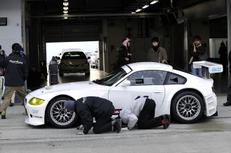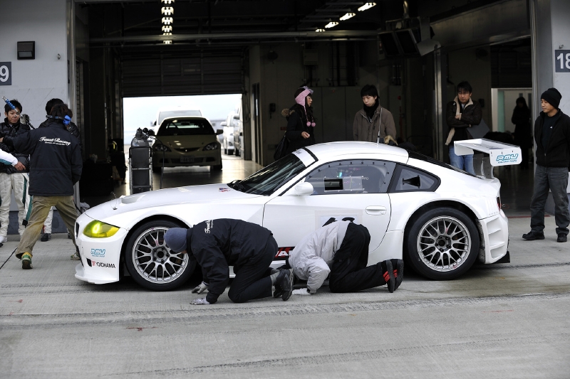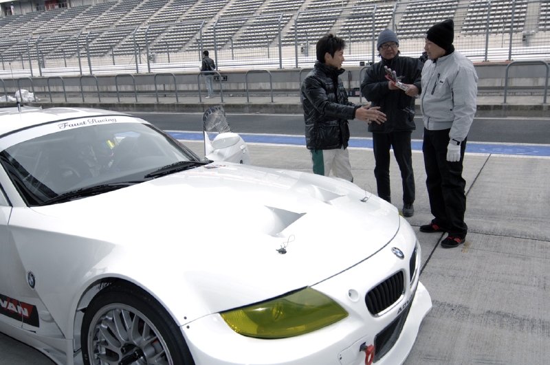 この日はモータースポーツ・レースを数多く主催する『大沼プランニング』の走行会の日。その場を借りて、Faust.RTが2011年シーズンを戦うBMW Z4M Coupeのシェイクダウンと、Faust会員向けのイベントとして新春走行会が開催された。チームのニューマシンのテストをしながら、会員にはレース専用車での同乗体験走行をしてもらおうというビッグな企画だ。