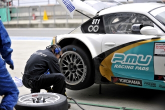 昼前には、気温30度、路面温度40度を超え、真夏の耐久らしくなってきた。S耐予選の始まる午後には、さらに暑くなるはずだ。今回はAドライバーに金曜の占有走行でトップタイムを出した岡本、Bドライバーに佐藤、体調をくずしている堀がCドライバーという布陣だ。ST-1クラスはBMW勢4台とスポット参戦のポルシェを1台加え、総勢5台の争いとなった。