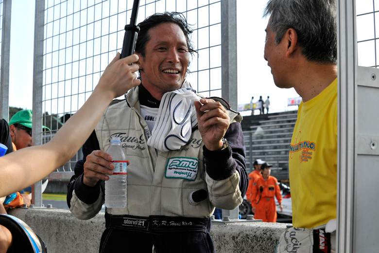 「レース再開後にコースを飛び出したのはオイルに乗ったため。側壁まで0.1mmぐらいでした(笑)。ラストは立ち上がり重視のラインが取れたので抜くことができたけど、直線は、軽くなって前に進むように車の中で跳ねてましたね。全く変わらないと思うけど、気持ちで」