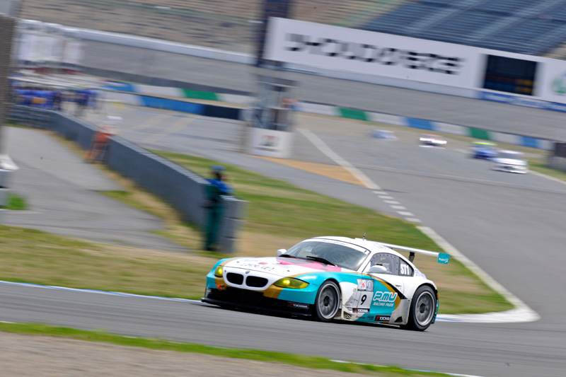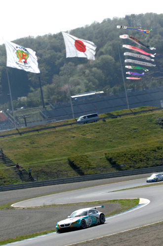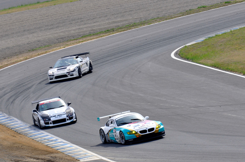 1周目、2コーナー。堀の後ろにいたポルシェは、その立ち上がり加速であっという間に堀のインに。3コーナーでは並ぶ間もなく交わされてしまった。初戦富士でのポルシェの速さは並ではなかったが。ここ、もてぎでもそのスピードは強烈。コーナリングマシンのZ4とは対照的な性格だ。