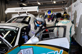 13時25分、26周目。他チームに先がけて、予定のピットイン。ドライバー交代と燃料補給のみ。作業時間は約40秒。素早い。場内放送は「タイヤ交換なしです」とBMW Z4のバランスの良さを強調する。