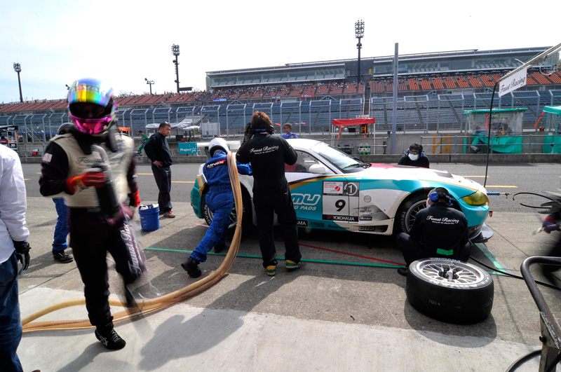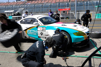 タイヤ交換は山野にチェンジする時の1回のみ。S耐ではセンターロックのホイールが使えないため、4本全部のタイヤを交換する場合、それだけで40~50秒のタイムがかかってしまう。もてぎのピットロードは他コースに比べ短くタイムロスが少ないこと、BMW Z4とヨコハマタイヤとの相性を考えての作戦だ。その通り運ぶかは、レースデータの少ない現状では、神のみぞ知る…だが。