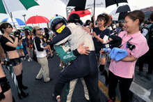 あと10周、9周……5周、4周……レースクイーンも総動員、無線で山野に激励メッセージを送る。