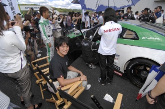 そして、Faust RTの走行会イベントにいつも駆けつけてくれるGTドライバーの千代勝正も、今回の岡山にやってきた。スーパー耐久第3戦ではFaust RTドライバーとして参戦したが、今回はGT3クラス、近藤真彦率いる日産自動車大学がエントリーするGT-Rのドライバー。優勝請負人としての重責を背負っている。ピットが隣ということもあり、山野に代わってアドバイスもしてくれる。