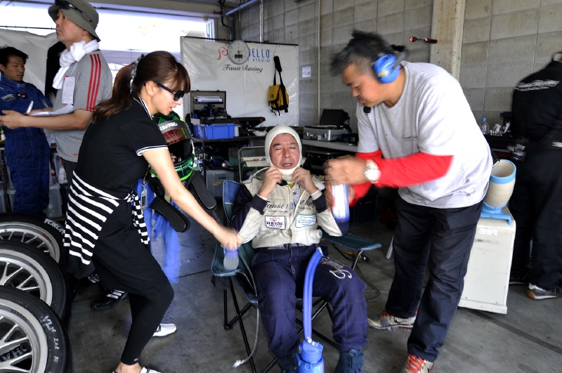 この予選直前にFaust RTのレースクイーンが熱中症で倒れ、医務室に搬送されている。メカニックにとって蒸し暑いピット内での作業は、「余計なことをしてくれた」が本音。一人のメカニックから岡本に「焼肉ごちそうさま~」の声が出る。これで場はなごんだ。