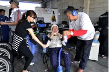 金曜日、ドライコンディションで行われたフリー走行では、3名のドライバーがそれぞれ1分40秒台を出し、好調さをアピール。昨年のラップや他チームとの比較でも、明日の予選は勝負になるはず。久々で心配された佐藤も、「思ったより走れている、意外に忘れていない」と、スタッフを安心させてくれる。ニュータイヤでの予選は、40秒を切るだろうし、できれば38秒台でポールを争いたいところだ。