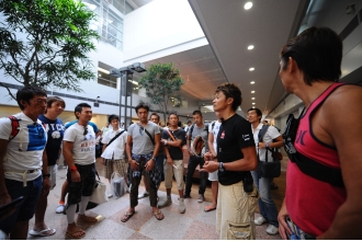 ブリーフィング前、白戸のアドバイスに耳を傾けるM.I.T.メンバー。