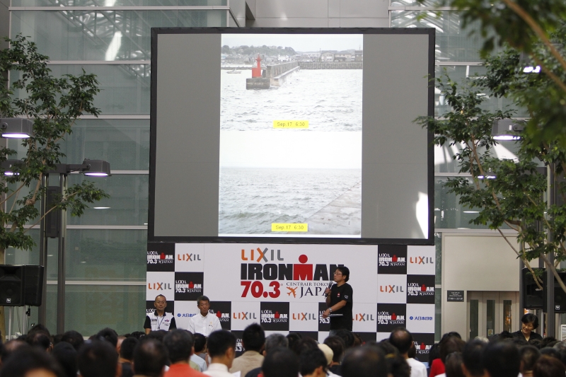 2011年9月17日。愛知の中部国際航空「セントレア」のセンターピアガーデンには、真っ黒に日焼けしたアスリートが続々と集まった。「アイアンマン70.3 セントレア常滑ジャパン」のスタートを翌日に控えて開かれた、選手ブリーフィングだ。
