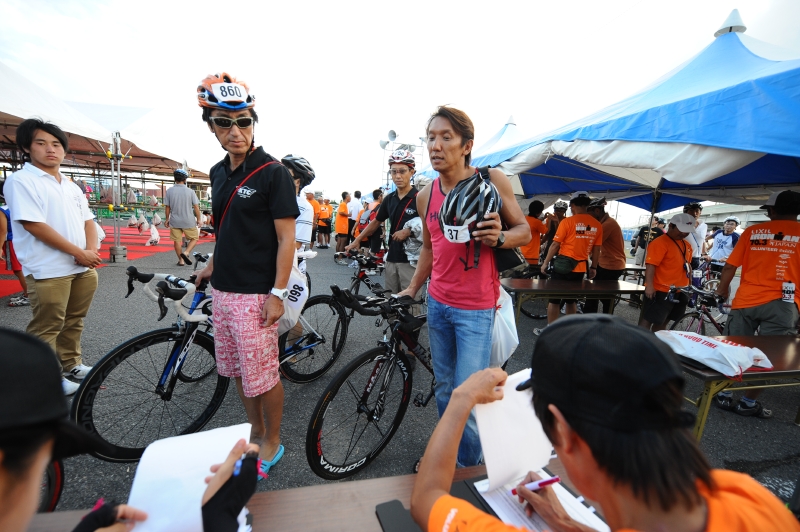 そしてもう一つ、選手たちの不安を駆り立てていたのが、レース当日の天候状況だった。折しも太平洋沖には台風15号と16号が発生し、本州へ迫っていた。ブリーフィングの席で「当日朝6時の時点で状況を判断し、波の高さによってはスイムを1.2kmの短縮コースに変更する可能性がある」ことが告げられた。また、オリンピック・ディスタンスの2倍以上の距離となる70.3のコースを確保にするために、同じルートを何度も周回する箇所や折り返し地点の多さなどが注意点として告げられ、コースの難解さに頭を抱える選手も少なくなかった。