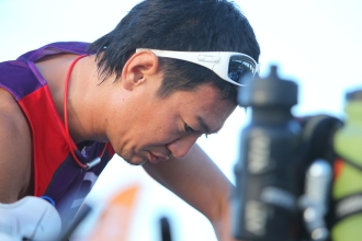 「アイアンマン70.3は、これまでのオリンピック・ディスタンスとは全く違う。ランに入ってからが勝負と考えるくらいでちょうどいい。バイクの時にゼリーなどでしっかりとエネルギー補給をして、バイクでは決して飛ばし過ぎないこと」