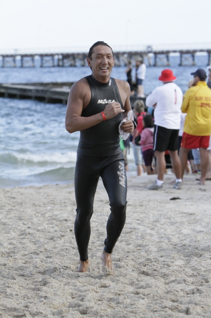 先にビーチへ戻ってきたのは、山川だった。1時間20分21秒である。全体では760位、45歳から49歳のエイジグループでは71位の成績だ。