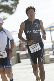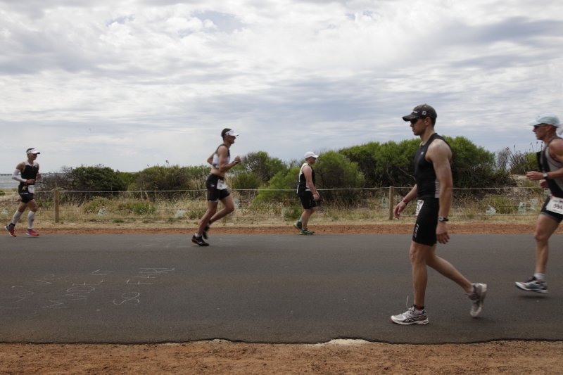 5時30分のレース開始から、すでに7時間半以上が経過していた。時刻は午後の13時30分になろうとしている。日差しが真上から照りつけている。アスファルトの照り返しが身体を焼く。レースコンディションは、いよいよ過酷になってきた。アイアンマンは、ここからフルマラソンなのだ。