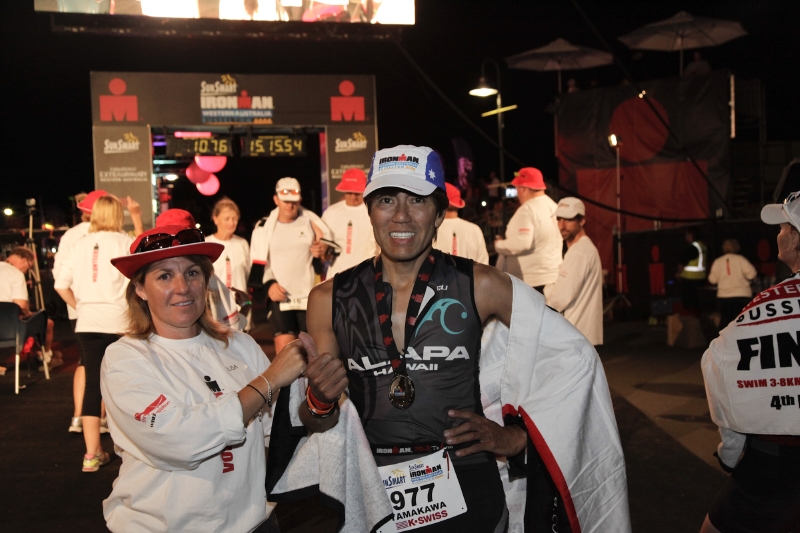 「もう終わっちゃうのかあ、寂しいなあって思ったんですよ。朝から10時間以上もずっと向き合ってきたアイアンマンという競技が、ついに終わってしまう寂しさ。日本から届いた応援のメールを思いだしたり、マサさん(山川)は大丈夫かなあとか、いろんなことが頭をよぎった」