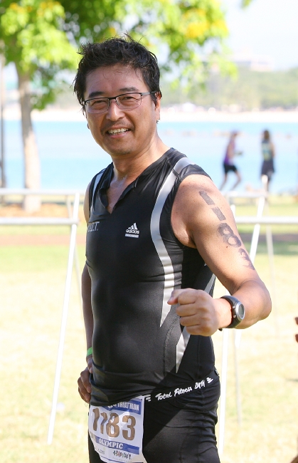 「(一昨年の)10月、白戸さんがアイアンマンに出るのをハワイに見に行ってね、そのときに感動したわけよ。華やかだし、町中が盛り上がっているし、やっぱりトライアスロンのF1ですよ、あれは。それで、スター選手が一気にゴールしちゃう一方で、ヘロヘロになってゴールしてくるおばあちゃんもいる。それは感動モノです。そこで『ユー・アー・アン・アイアンマン!』ってアナウンスがあって、アイアンマンの称号が与えられるんだから。コレは出なきゃダメだな!と(笑)。長いスパンで計画していけば、できるだろうなと思っています。だから、僕は60歳で出場っていうのを、ひとつの目標にしています。それにアイアンマンレースって、人生がある程度分かりきった年齢でやるのが一番いいじゃないかと思う。そういう年齢だと、つらさにも耐えられるんじゃないかな」