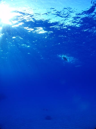 ロタ島のどこまでも青く、澄んだ海。井上のトライアスロン・デビューの地である。