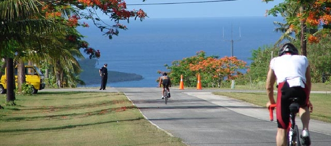 トップ写真:ロタ島でトライアスリートたちの行く手を阻む過酷な上り坂!!