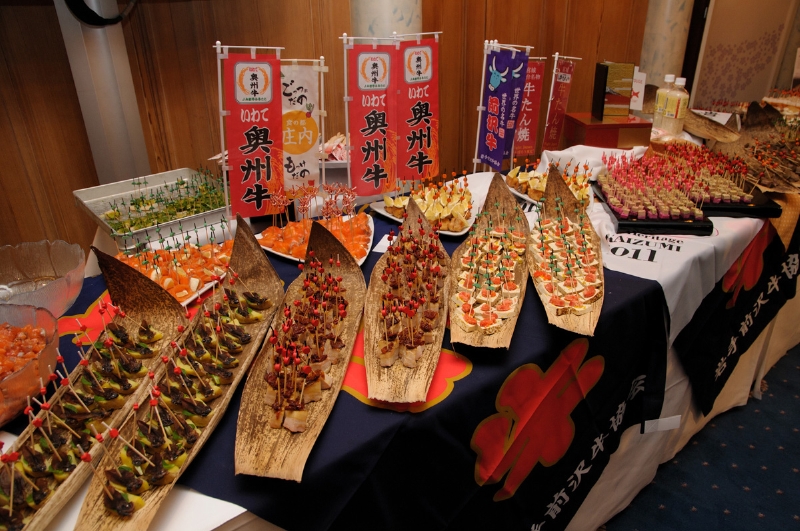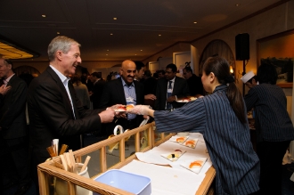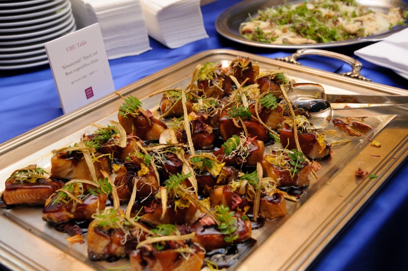 「光の料理」と題され、訪れた各国のゲストをもてなしたのは、世界的に有名な日本の料理人たちによる料理の数々。料理を監修したのは、ロンドンの懐石料理「UMU」の石井義典氏、山形県鶴岡市のイタリア料理の「アル・ケッチャーノ」の奥田政行氏、岩手県奥州市のフランス料理「ロレオール」伊藤勝康氏、洋菓子「パティスリー・サダハル・アオキ」の青木貞治氏など錚々たるスターシェフたちだ。彼らのディレクションのもと、チューリッヒの日本料理店「BIMI」が協力し、ヨーロッパのソース文化とはまた違う、素材自体の味を引き出す日本独自の調理法でゲストをうならせた。「食は日本の大切な財産だと改めて実感しました。食ひとつが国のイメージを変えることができるのだと。ゲストからも『これだけのクオリティの高い日本食を遠く離れたダボスで食べられるなんて』と好評でした」。