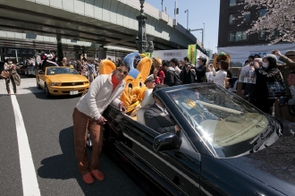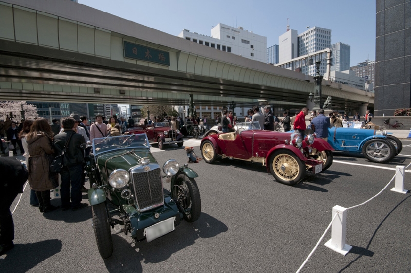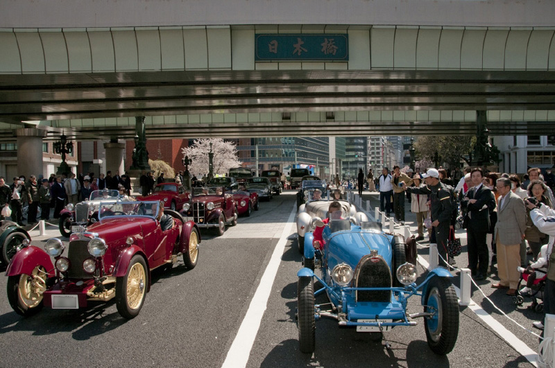 関東地方に桜が咲き誇る4月8日、「JCA」が誇る往年の世界的名車が日本橋に集結した。木村らが駆るクラシックカーは春の交通安全運動パレードに参加し、日本橋上にズラリと展示される。これほどの名車が勢ぞろいする光景は、なかなか見られるものではない。すぐに人だかりが膨らみ、カメラと携帯電話のシャッター音が重なる。「JCA」では毎年の光景だ。