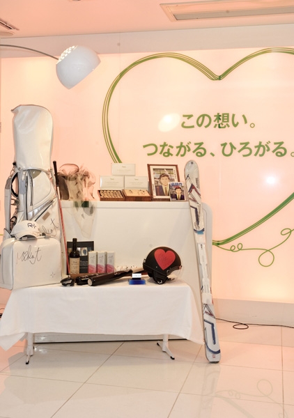 例えば「丸山茂樹プロによるサイン入りゴルフクラブ」、「羽生善治名人所蔵 名人の筆による将棋駒盤のセット」、「漫画家・弘兼憲史氏によるサイン入り島耕作原画」など世界に一つしかない希少なものから、「ハンガリー大使館シェフによる出張シェフズディナー券」、「アイランドホテル&リゾート那須スイートルーム宿泊&ゴルフプレイ券」などプレミアムなチケット、そして美容クリニックのスペシャルプランや化粧水など女性に嬉しいアイテムまで。魅力的なアイテムの数々はオークションまでのひと時、参加者たちの目を釘付けにしていました。