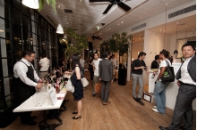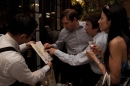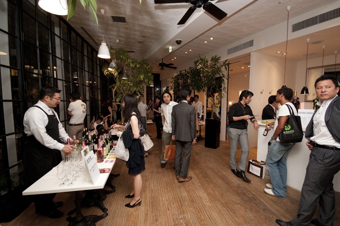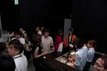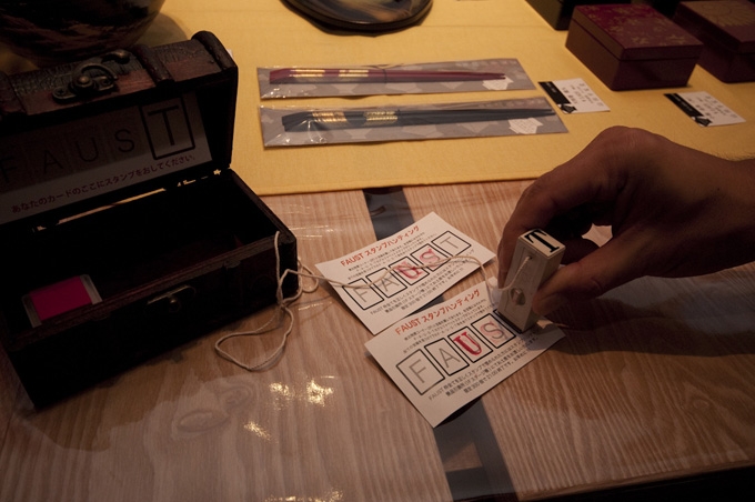 2階のフロアにあがると、貸し切りのカフェスペースでは、岩手県産の「エーデルワイン」やタイの「シンハービール」などが振る舞われていて、ファウストのメンバーもすでにほろ酔いで気分でリラックス。テラスにでれば、初夏の夜風に吹かれながら日本たばこアメックス提供の葉巻を手に、友人と談笑し、次なる冒険やビジネスの話に花を咲かせる姿も見受けられました。また、別のエリアではスタンプハンティングに興じ、まるで少年のようにはしゃぐ姿もあったり、ファウストたちにとっても今宵のパーティは目まぐるしくも笑顔のたえないひとときだったはず。