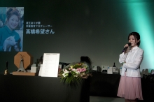 またステージでは、協力企業の中から宮城県のブランド豚「蔵王ありが豚」の栄養食育プロデューサー高橋希望さんが、現地より挨拶にかけつける場面も。「大震災で壊滅的な状態となった、私たちのブランド豚『ありが豚』を復興させるために、さまざま活動をしています。今回はこのような機会をいただきありがとうございました」と語る高橋さん。
