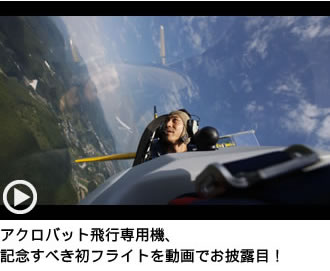 ファウストカラーである、ネイビーとイエローを基調とした美しき機体が、紺碧の空をバックに、宙返り、垂直落下、連続ロールを繰り広げる。芦田と室屋による記念すべき初フライト、動画でのお披露目である。