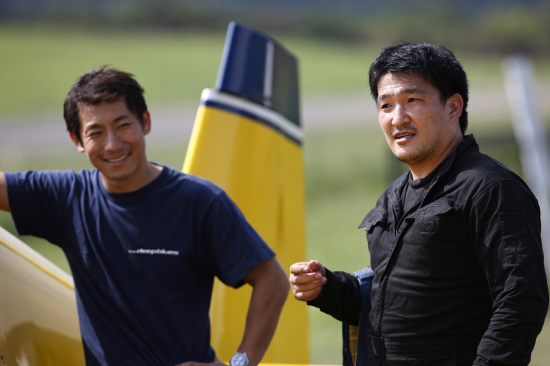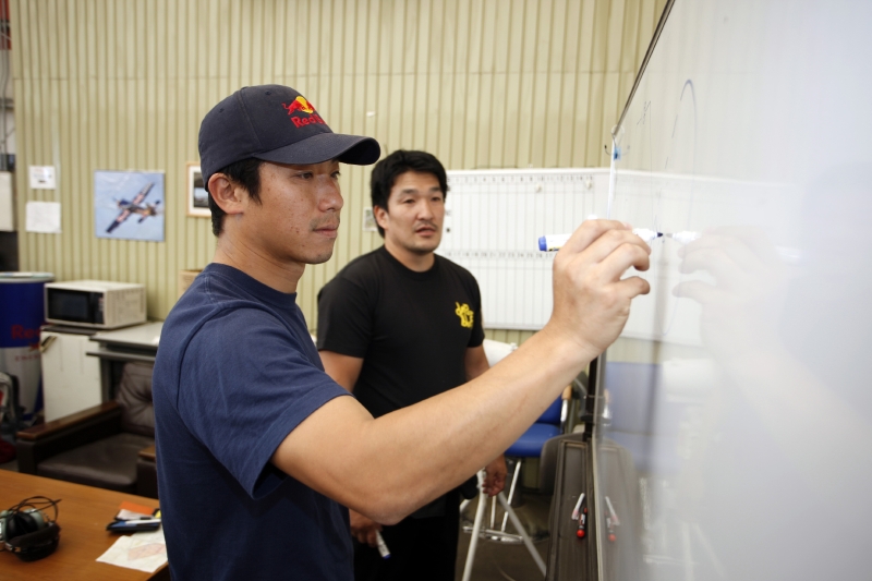 チームのキャプテンを務めるFaust芦田博が、自分に問いかけるように話す。室屋義秀は肩を小さくすくめ、穏やかな表情で芦田の顔をみつめた。今年、アジア人初のレッドブル・エアレースパイロットとなった室屋は、チームのスーパーバイザーだ。実は、彼らは古くからの友人でもある。