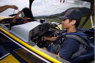 Faustチームとしては初めてのフライトとなった芦田だが、すでに70時間強のアクロバティック飛行経験がある。ヘリコプターやセスナの操縦席でも、かなりの時間を過ごしてきた。フライトに際しての恐怖はすでにクリアしているし、旋回や急降下の際に襲ってくるG(加重)も体験済みだ。機体はもちろん自分をコントロールする術を、彼は身につけている。だからこそ、初めて操縦する『エクストラ200』の運動性能を、十分に引き出すことができたに違いない。