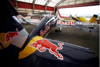 ハンガーの一角にはレッドブル仕様のエクステラ300Sが。