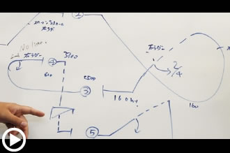 ホワイトボードの前へ進んだ室屋が、青色のペンでこの日のメニューを書き込んでいく。要するに、どのようなエアロバティックスを行うかを記号で表した3次元の飛行コース図である。