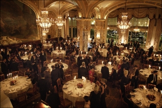 今や9ブランドを擁するビッグメゾンへ成長したフランク・ミュラー・マニュファクチュールの新作が一堂に介す、「W.P.H.H(世界高級腕時計展)」。12周年を迎える今年は、モナコへ初進出し、モンテカルロ・ベイ・ホテルの一角に特設会場が設置された。名門オテル・ドゥ・パリの〝インペリアル会場〟(写真)では、ガラ・パーティも開催され、華やかな宴に酔いしれる300人の紳士淑女の前で、話題作「エテルニタス・メガ4」の販売第1号モデルが、購入者に手渡された。