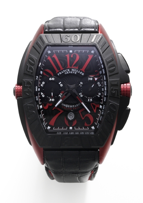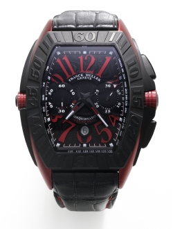 もうひとつの名作は、9月にシンガポールで開催されたF1グランプリを讃えるために製作された「コンキスタドール クロノグラフ グランプリ 2009」。伝統的なトノウ型のケースをスポーツウォッチへと昇華したデザインワークの秀逸さもさることながら、素材においてもフランク・ミュラー氏の持ち味である革新性が表れています。