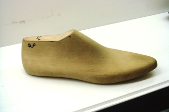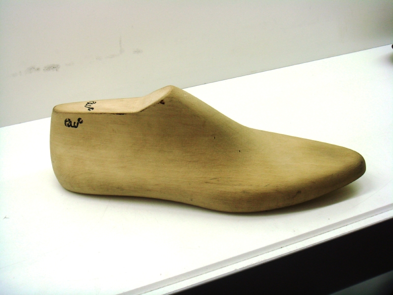 ショップにつねに飾られている、祖父のデザインを基につくったという木の靴型。ブーツなど一部を除くすべてのモデルが、この型から作られる。