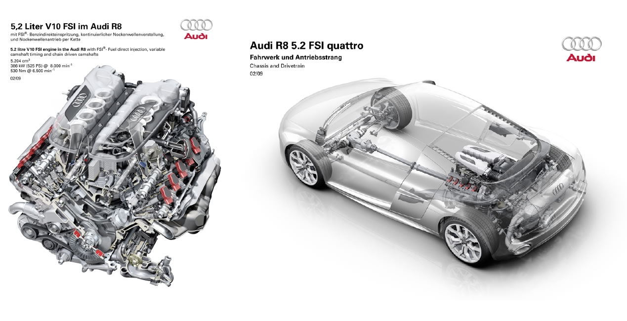 「R8」といえば、かつてル・マン24時間耐久レースで5連勝を成し遂げ、世界各国の耐久レースで62戦勝を達成した希代のレーシングカー。その遺伝子を 持つプレミアムスポーツカー「R8」シリーズに、525馬力のV型10気筒エンジンを搭載し、さらなるパワーアップを図った、まさに“最速のR8”であり ます。