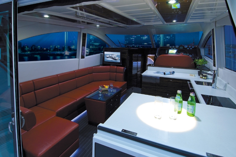 モナコグランプリのエピソードにもあるように、欧米では週末をボートで過ごすライフスタイルが文化として根づいており、セクシーで洗練されたデザインの船も多く生産されています。それに比べ、日本ではボートというとフィッシング用が中心であり、クルージングボート文化や市場はまだ発展途上というのが現状です。ところが昨年9月、その状況を打破するかのごとく、性能やデザイン、インテリアなど欧米メーカーに引けを取らないメイド・イン・ジャパンのボートが登場! それがヤマハ発動機から発表された『イグザルト36 スポーツサルーン』。その年の1月から12月までの間に発売されたボートの中で最も優れた船に贈られる賞「日本ボート・オブ・ザ・イヤー2009」にも輝いた豪華な船です。