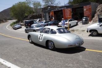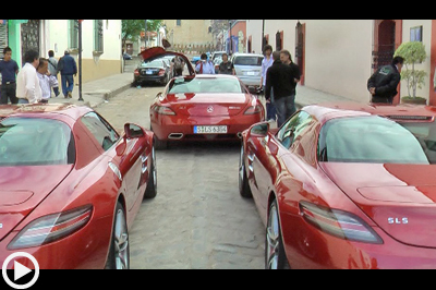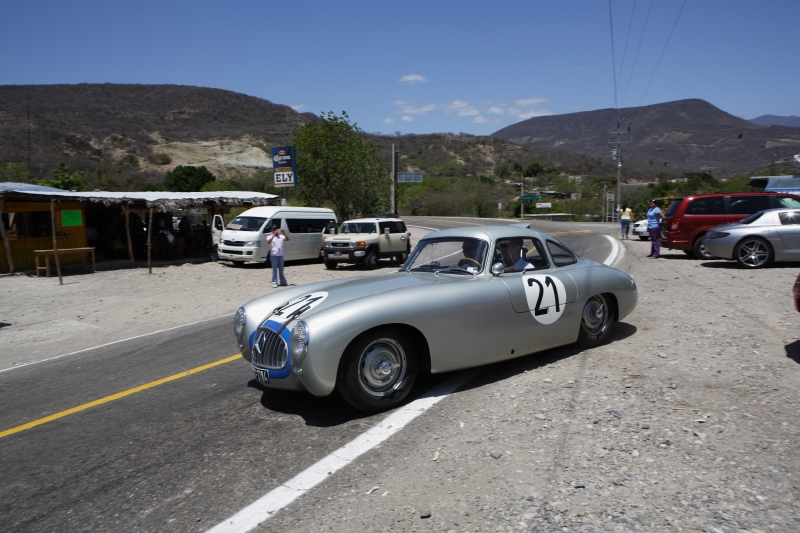 今春、そんな“伝説のレース”に採用されたコースの一部を使って、メディア向けのイベントが開催されました。主催はメルセデス・ベンツをブランドとして持つダイムラーAG。日本でも去る6月10日に発表された新型車「SLS AMG」のお披露目に先駆けて、同コースを疾走させたのです。なぜ、同コースが選ばれたかというと、この「SLS AMG」は、”カレラ・パンアメリカーナ・メヒコ”を走った伝説のレーシングカー“300SL”の系譜にあるクルマだから。ちなみに、シルバーのボディとグリーンに塗られたフェンダーを持つ300SLは、1952年の同レースで優勝し、ワークスはワンツーフィニッシュを飾りました。市街地や長く続くワインディングを含む約3100kmのコースを、18時間51分19秒で駆け抜けたというから驚かされます。