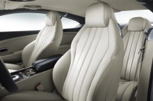 氏のキャリアはコーチビルディング部門のマリナー(スペシャルオーダーやコンバーチブルモデルなど特別仕様車に対応するベントレーの伝統的部門)から始まったというだけに、天然素材とハンドクラフトの温もりを生かし、上質で快適、かつ機能的な空間を具現化しています。インストルメントパネルはベントレーのエンブレムである伝統のフライングBをモチーフに大胆にデザイン。くびれのあるグラマラスなシートはコブラデザインといって、機能的には軽量化とシートバックの形状を工夫することで後席のレッグスペースを46mm拡大しています。また、座面の長さを調整する可動部はレザーの切り込みをなくし、ほこりなど溜まらぬように配慮。ドアトリムは緩やかな曲線を描き自然な印象を与えつつ、便利なドアポケットを新設するなど日常の使い勝手も向上させています。