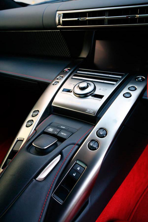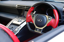 では、インテリアはどうなっているかと言えば、じつはエンジン音、軽快なフットワークと同じくらいに驚きました。とりわけドライバーズシートに座った瞬間のおさまりのいいポジションと、オリジナル性の高いインパネまわりのデザインがかっこいい。ここはナニモノにも似ていないLFAだけの世界観です。