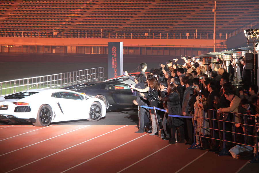 国立競技場のトラックを、火柱をバックに、アヴェンタドールが疾走!驚きのローンチイベントをチェック!