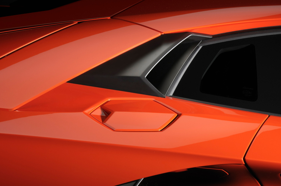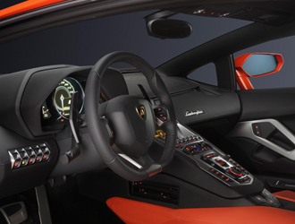 アヴェンタドールを初めて目にするとき、その矢のようなプロポーションが見る者に強烈な印象を残す。全長は4.78m にすぎないが、全幅はエクステリア・ミラーも入れると2.26m と圧倒的に広くとられ、それに対して全高は1.136mに抑えられている。その幅広い印象は、間隔を大きく取って配置された左右の巨大なエア・インテークとヘッドランプ・ユニットによって強調される。アヴェンタドールのコックピットは上質なレザーを張って仕上げられており、コントロール系は幅広いセンターコンソールにまとめられ、航空機にインスピレーションを得たデザインがなされている。その未来的なインストルメントはTFT-LCD ディスプレイによって表示され、加えて第2 のTFT-LCD ディスプレイが用意され、統合型マルチメディアシステム用の7 インチディスプレイとなっている。