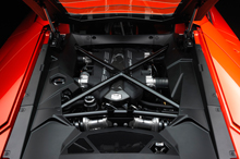 アヴェンタドールのボディは、軽量工学と最高レベルの剛性、安全性を組み合わせたカーボンファイバー製の革新的なモノコックがベース。これがハイパフォーマンスに必要な、圧倒的なねじれ剛性を生み出すと共に、優秀なパッシブ・セーフティにも寄与している。乾燥重量は1,575kg とこのカテゴリーのクルマとしては軽量だ。