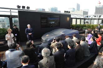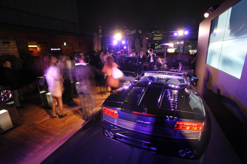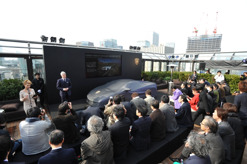 毎回、見る者に刺激的な演出を行ってくれるランボルギーニの新車発表会。今回は銀座のビル屋上レストランのラグジュアリーな空間で華やかに開催された。
