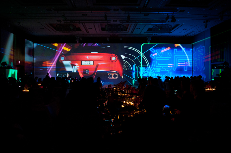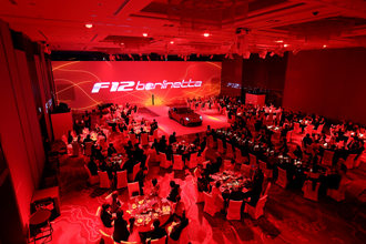 特別ゲストには映画「ローマの休日」で知られる名女優オードリー•ヘップバーンのご子息ショーン•ヘップバーン・フェラー氏も出席。日本のフェラーリ・ファンとともにローンチをお祝いした。また、イベントでは歴代V12モデルの写真を展示するとともに最新の映像技術を駆使し異空間を思わせる演出も行われた。そして最後にはF12ベルリネッタがステージ上へ。あのフェラーリサウンドを響き渡らせたのはいわずもがなだ。会場は最高に盛り上がる。