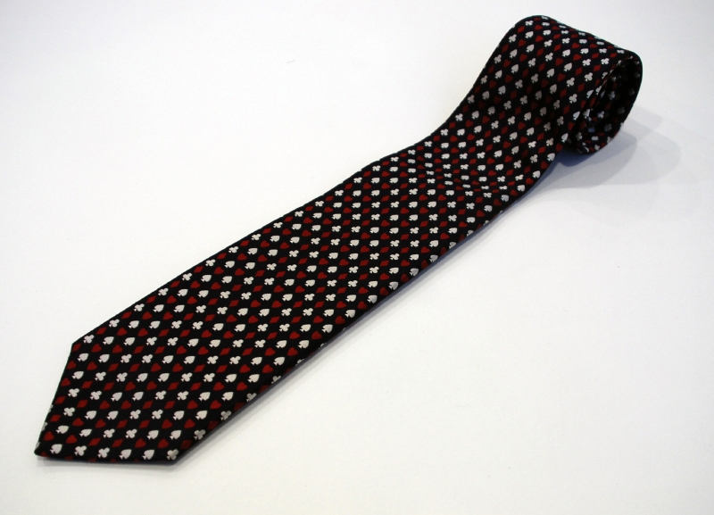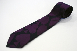 彼らには、ぜひ今回のコレクションを着てカジノでプレーしていただきたいですね(笑)。これは1950~60年代、ロンドンのメイフェアにあったカジノからインスパイアされました。戦中の貧困した時代、唯一娯楽と贅沢が許されていたメイフェア地区に、プライベートカジノが存在していたんです。豪華なクリスタルのシャンデリアが施された部屋で、貴族とギャングが同じテーブルでゲームに興ずるという混沌とした世界……。服のデザインだけでなく、アクセサリーもトランプのサインがついたネクタイやチーフなどを展開しているので、プレーする際にはファッションに取り入れていただけたら嬉しいです。