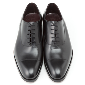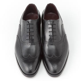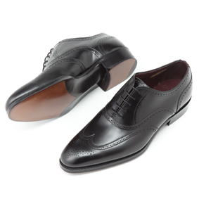 SANDRINGHAMサンドリンガムチーニーのインペリアル・コレクション、従来のフルブローグに比べエレガントでスマートな仕上がりのモデル。アッパー素材はストレートキャップと同じブラック・カーフ。底材の仕様もバッキンガムと同様。 |