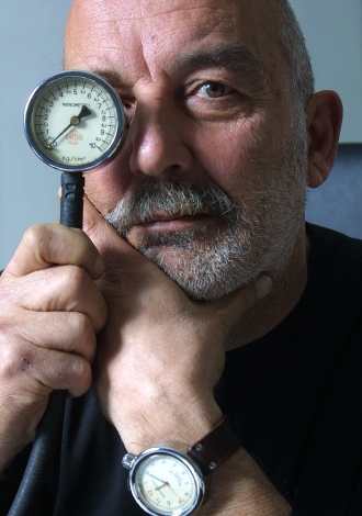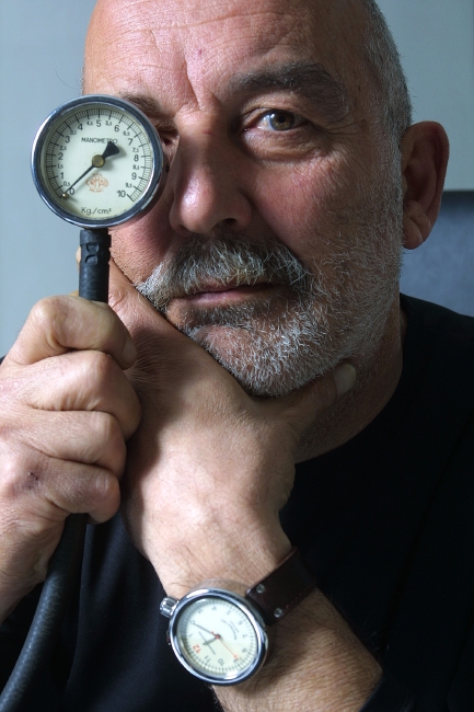 イタリア生まれの65歳。アルファロメオGTの専属ドライバー、さらにデザイナーとしてMOMA(ニューヨーク近代美術館)にも作品が所蔵されるなど、異色の経歴を持つ。時計のデザインは2003年からで、2006年発表の「マノメトロ・クロノグラフ」で脚光を浴び、今日に至る。