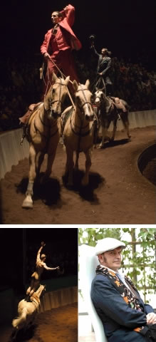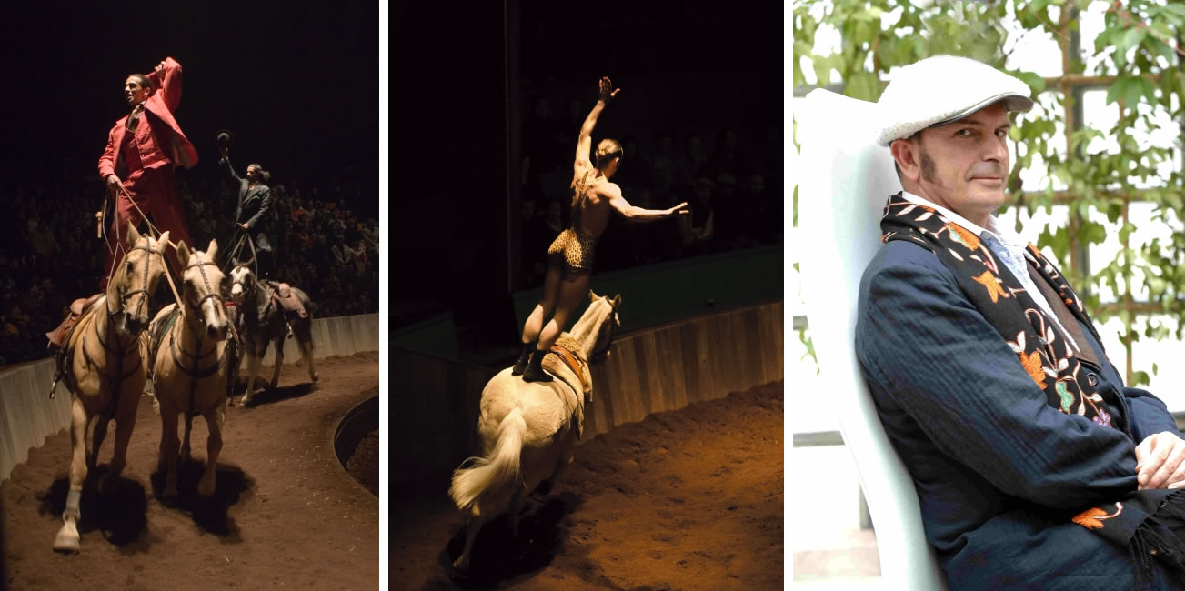 下右:『ジンガロ』主宰のバルタバス氏。出生本名不明、現代のシャーマンと言われ、1984年に『ジンガロ』を旗揚げ。制作、演出、音楽監督、調教師、演出など全てをこなします。